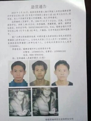 3月3日,福州警方发布一则悬赏通告。通告称,2月14日情人节,警方发现一名女子谢天琴死在福州一所中学教职工宿舍内,其22岁儿子吴谢宇有重大作案嫌疑,警方悬赏万元缉捕。